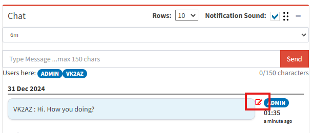If you need to edit your chat message, an edit button appears on the right side of the message for a maximum of 10 minutes. After this time the edit button will disappear.
