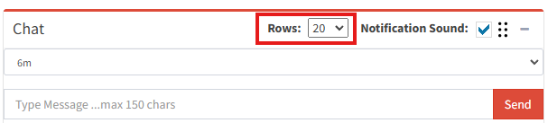 By default, 20 messages will be displayed in the chat area. You can use the “Rows” dropdown to select how many rows are displayed.